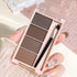 Eyebrow powder trays with brushes in gray and brown matte tones for long-lasting color.